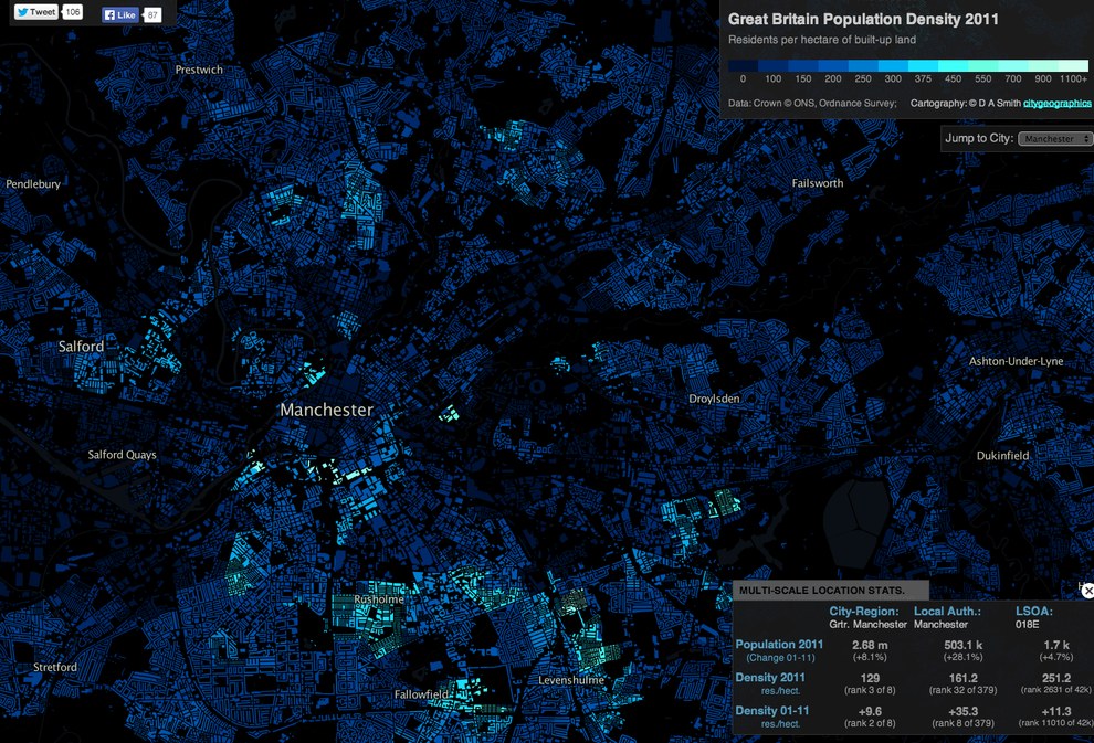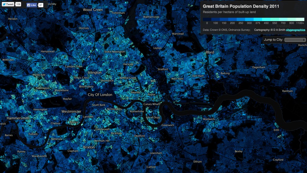 12. El Reino Unido, distorsionado para mostrar la densidad de población.