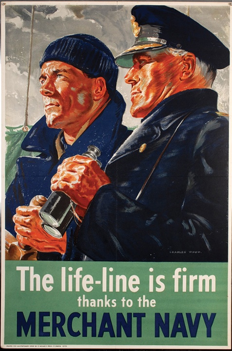 Artwork celebrating the work of the Merchant Navy, by Charles Wood.
