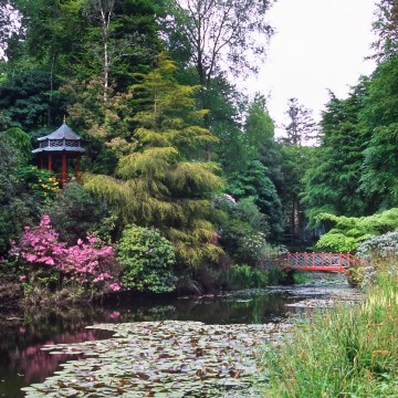Oriental Pagoda, and Bridge, Portmeirion Gardens, North Wales, U