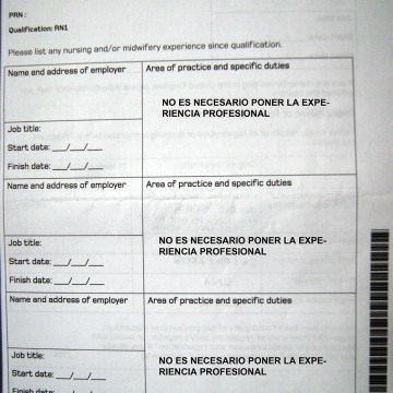 Details of registration & Practice: Tienes que indicar las fechas de los empleos, el puesto y servicio que ocupabas y el nombre y dirección del centro/hospital en el que desarrollabas tu trabajo (¡nunca deben coincidir 2 trabajos en las mismas fechas, procurad que no se solapen!)