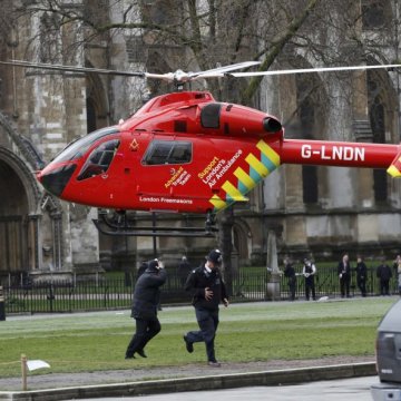 Uno de los helicópteros de los servicios sanitarios ante en las cercanías del Parlamento / REUTERS